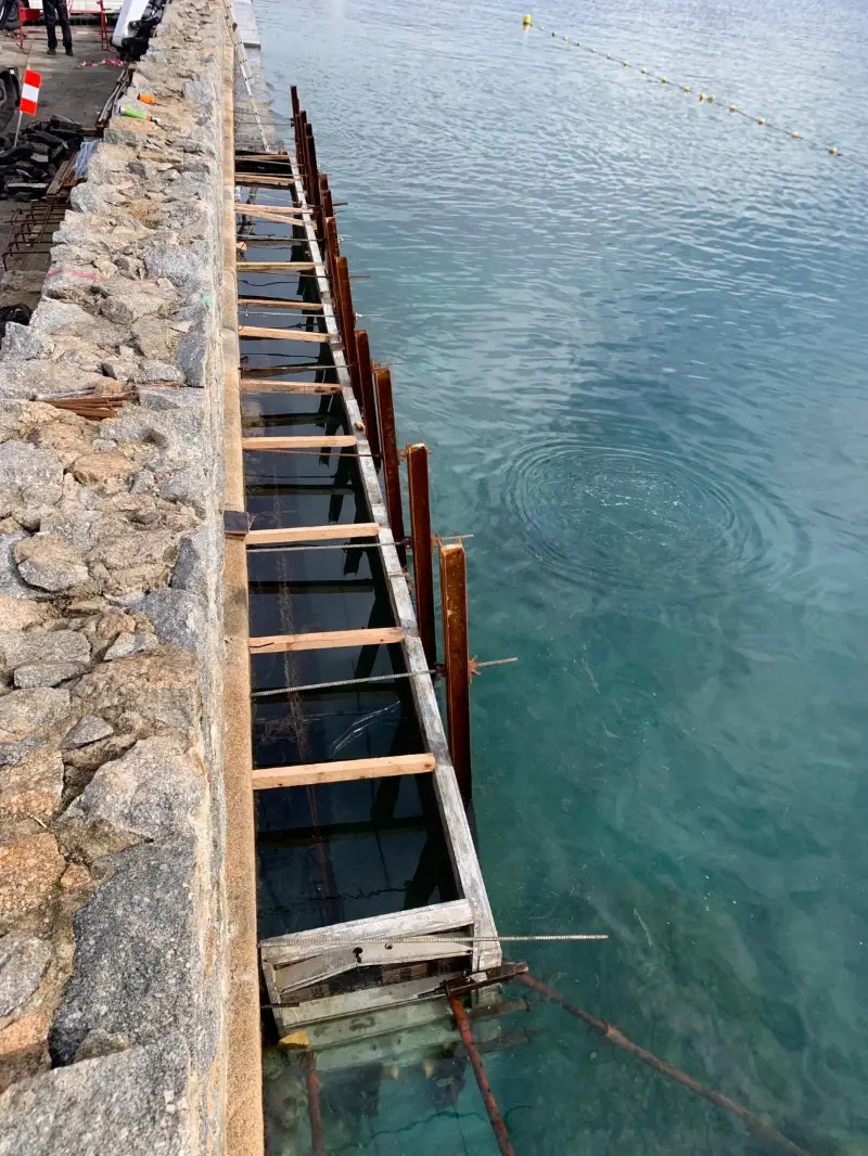 Ces travaux de coffrage et bétonnage sous-marins garantissent la pérennité de l’infrastructure et sa capacité à répondre aux exigences d’exploitation du site.