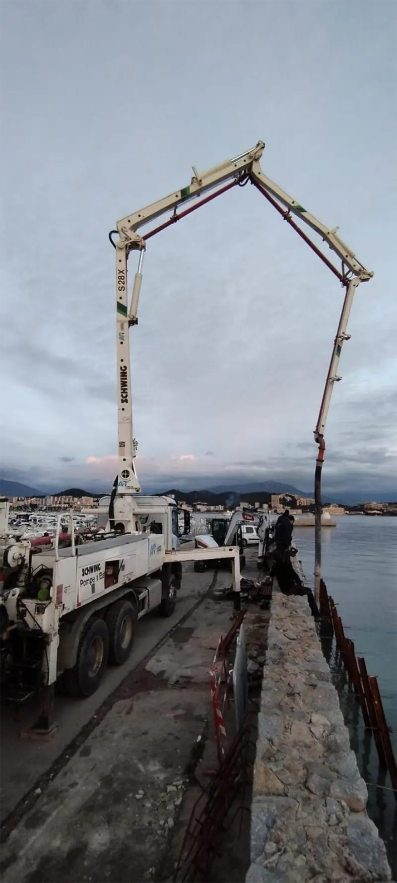 Le coulage a été réalisé en coordination étroite entre les équipes de surface et les plongeurs, garantissant un contrôle continu de l’opération.